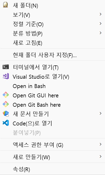 하지만 나의 경우에는 관련 git bash 버튼이 보이지 않았다..