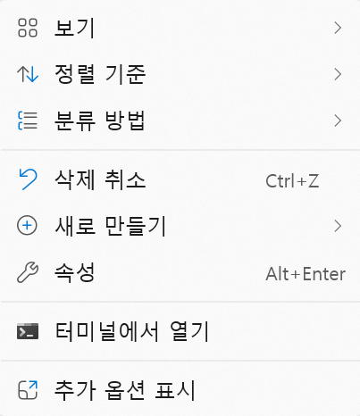 이 후 원하는 디렉토리에서 우클릭 -> 추가 옵션 표시를 클릭하면